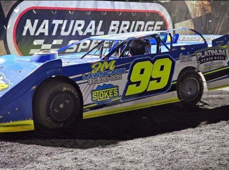 Matt Duggins dug deep to charge from the fifth-starting position to win the Late Mode feature at Natural Bridge (Va.) Speedway on April 6 aboard his No. 99 Double Nickel Race Car.